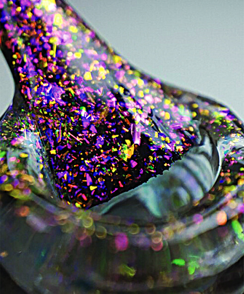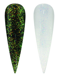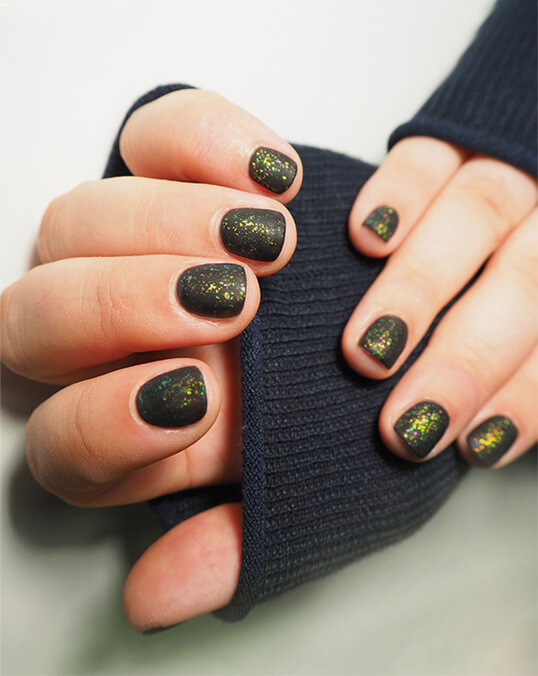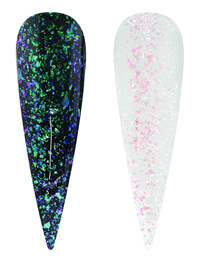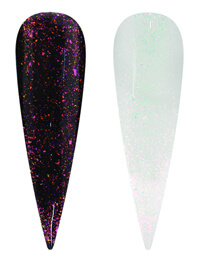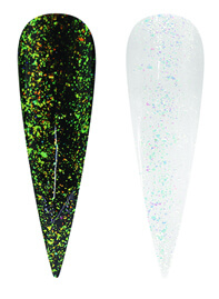 The name Galaxy Star speaks for itself. It makes your designs look mysterious, like stars in the night sky. Galaxy Star is a Shine Spectrum gel polish that contains light-sensitive micro-particles. The coating turns out incredibly shiny and glittering. The color of the nail plate changes depending on the angle of view, because the large glitter in contrasting colors is like confetti flying out of a firecracker. Due to the large particle size, the gel polish is quite transparent. It lays on perfectly and looks luxurious on the nails and designs. Due to the translucent base it can highlight and complement the shade and glitter of your color coating.