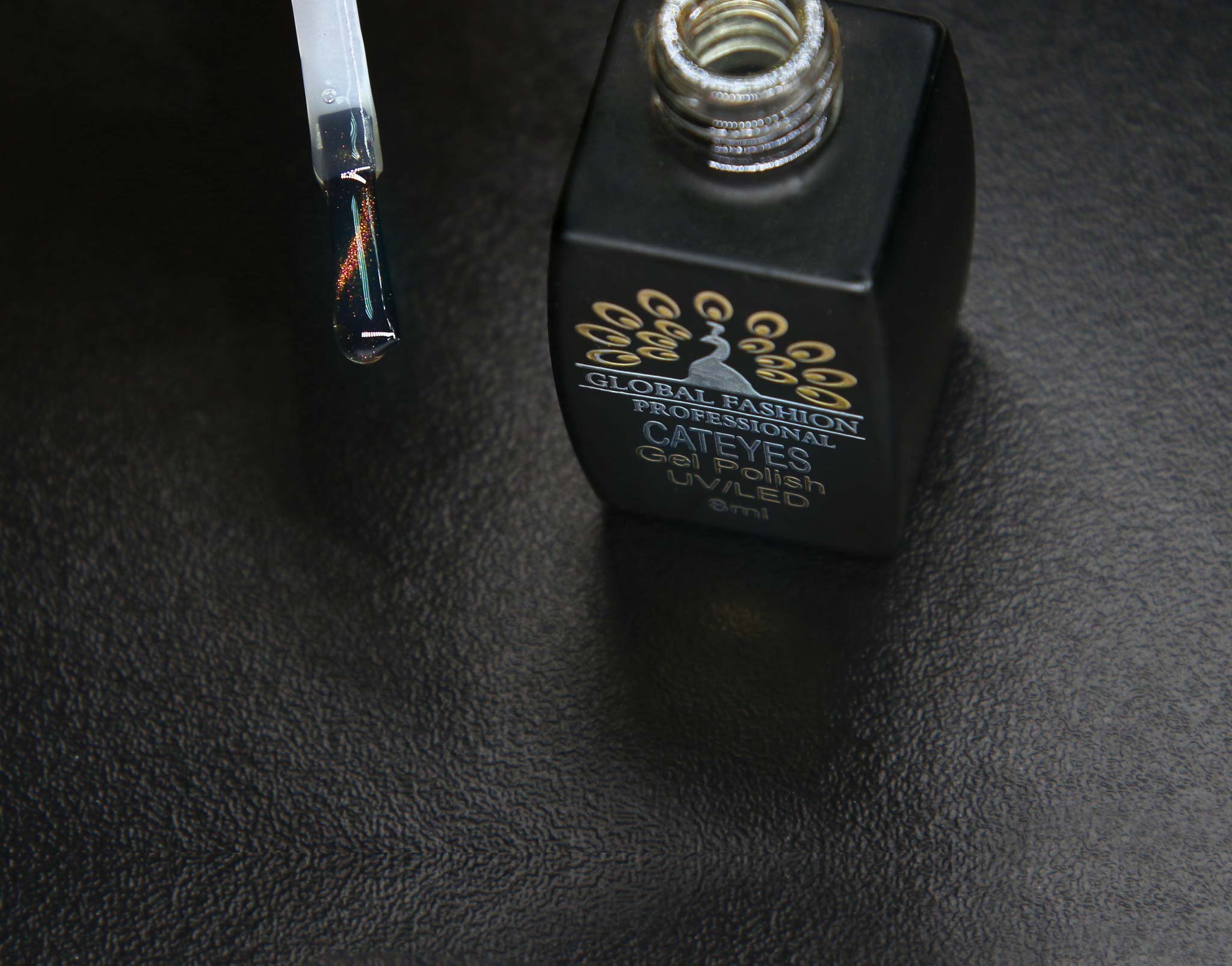 Global Fashion has developed a new line of "Cat's Eye" effect 7D gel polishes. There are four different shades in the range. The peculiarity of this gel-lacquer is its application on the black substrate, on which the 7D effect is fully revealed. After creating the line with the magnet, you can see the iridescent effect, a smooth transition of two colors, for example, turquoise and pink. Stylish 7D coverage: double glare and incredible color shimmers, hypnotic volume and light play, mesmerizing shimmer of the shimmer and spectacular running glare.