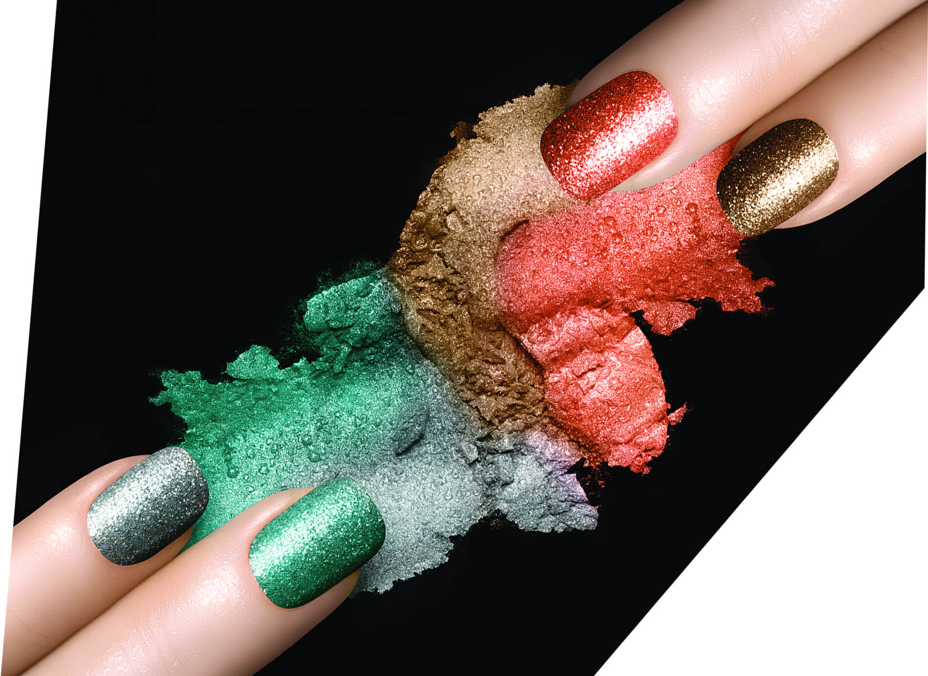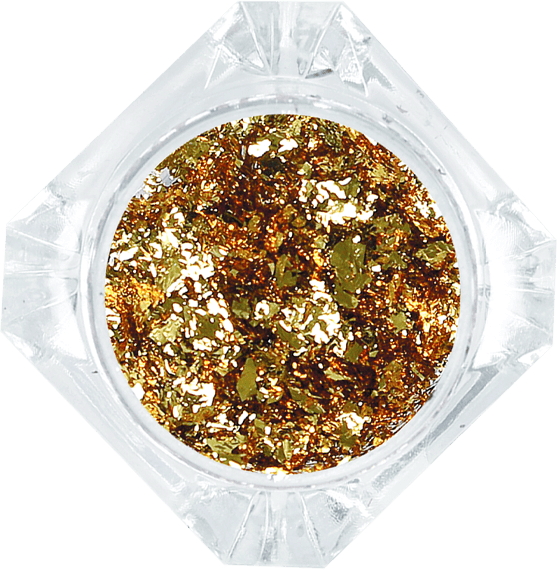 Powder Color Foil - is a rubbing pigment that contains pieces of delicate foil, creating an interesting broken mirror design on the nails.