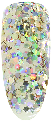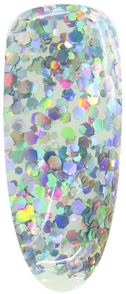 Glitter gel is an amazing gel, the hexagons of which impress with their qualities and holographic brilliance. It is used as a decorative coating. Glitter Gel will help you create a stunning nail design with a huge amount of shimmering sequins.